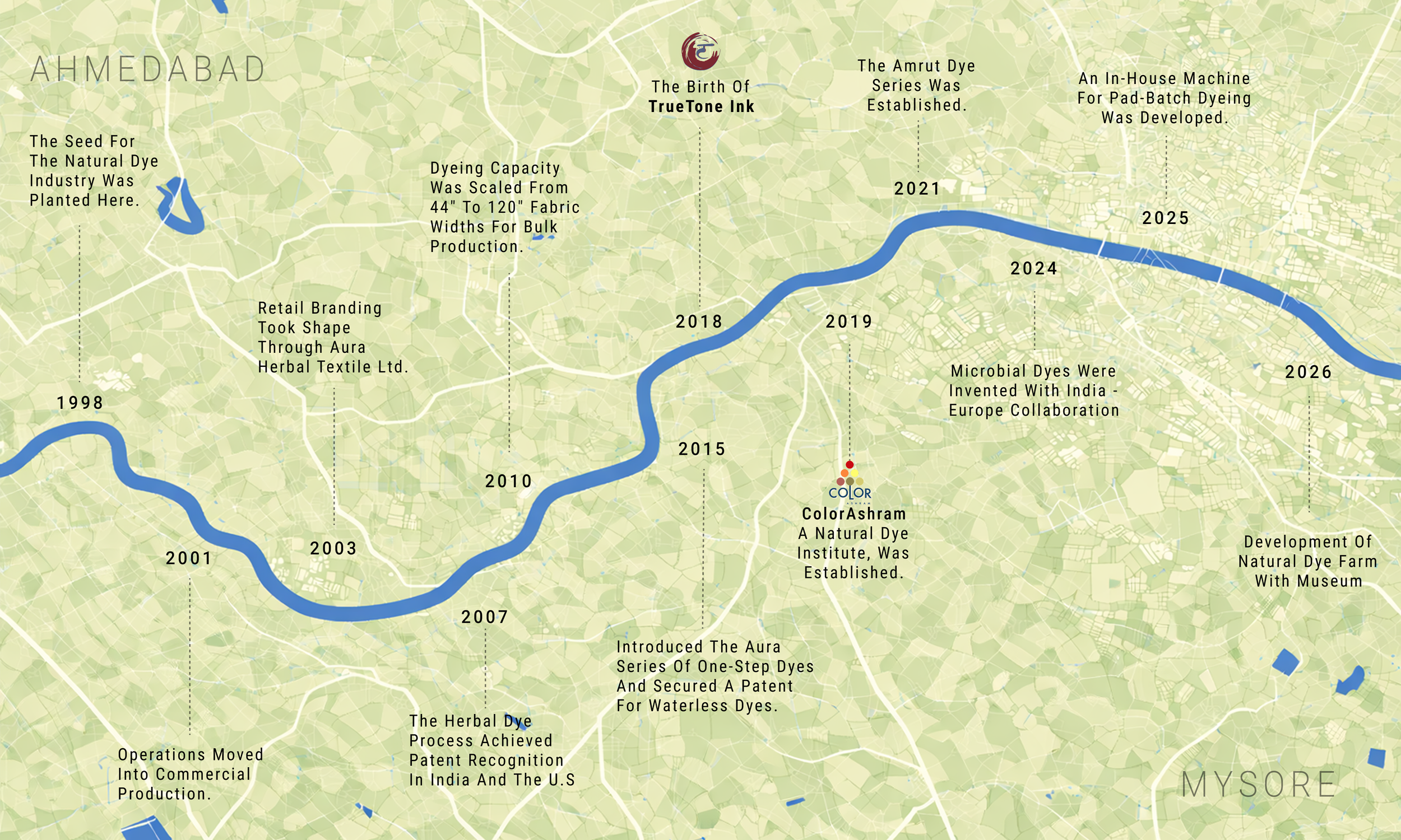 In the summer of 1995, while on an evening walk along the Sabarmati River, Arun witnessed the direct environmental impact of textile processing discharge. Effluents from numerous processing units were being released into the river system a vital natural resource supporting surrounding ecosystems, agriculture, and communities. The scale of discharge highlighted the larger environmental cost associated with conventional textile dyeing and processing.